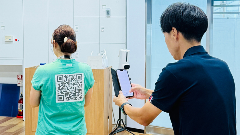 (日本語) 編集長が背負っているMy JATCOのQRコードを読み込み、My JATCOの読者になりました