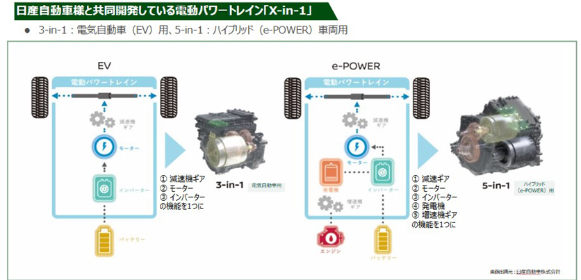 EV用を3-in-1と呼び、e-POWER用を5-in-1と呼びます。それらを総称してX-in-1と呼んでいます。