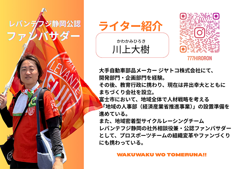 実は私自身、自転車レース好きが高じて、現在はレバンテフジ静岡の社外相談役兼・公認ファンバサダーとして、チームの活動に関わらせていただいています。